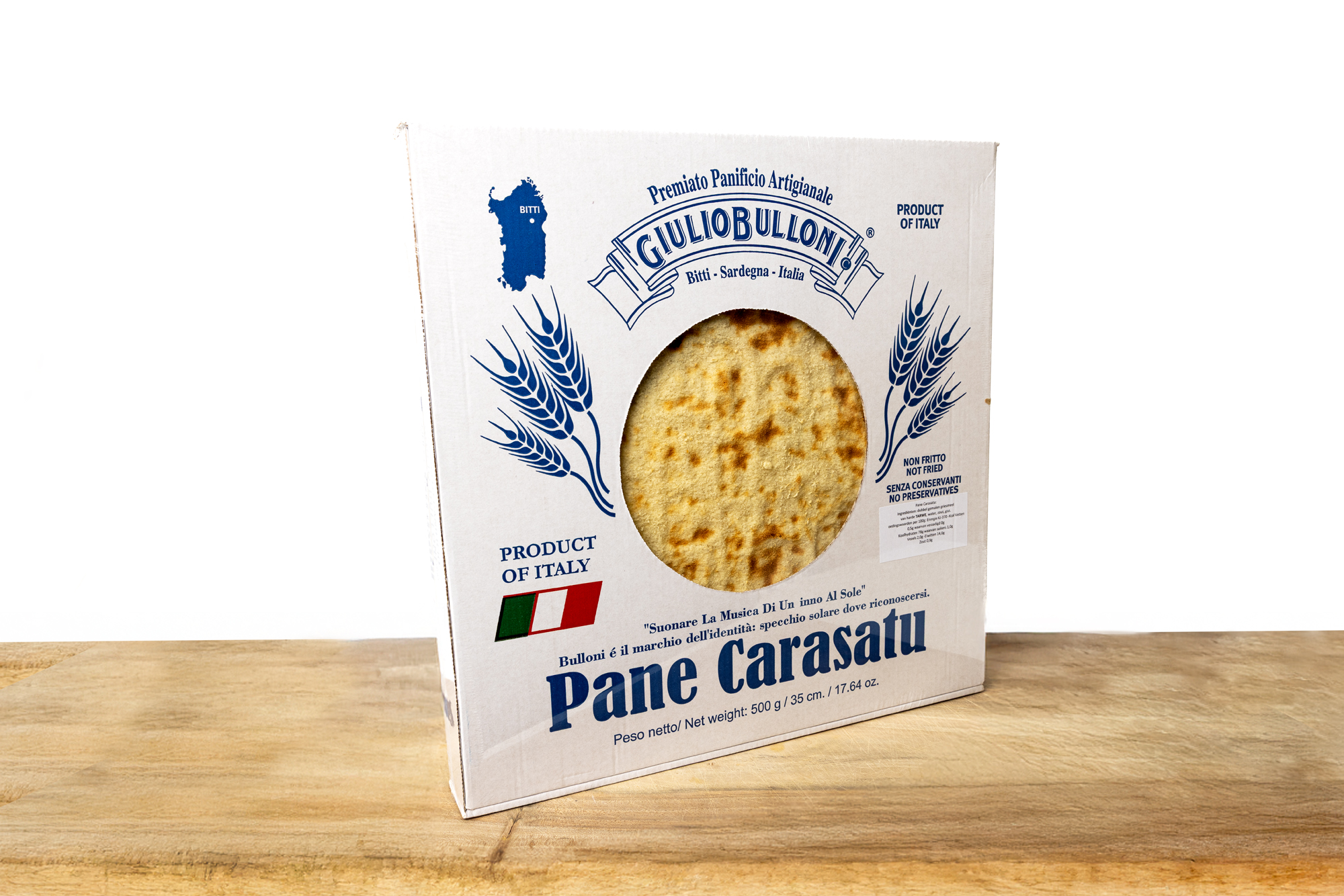 Pane Carasau is een traditioneel platbrood uit Sardinië, flinterdun en ovengebakken tot het heerlijk krokant is. Licht en luchtig van structuur, met een milde, nootachtige graansmaak die nooit overheerst.